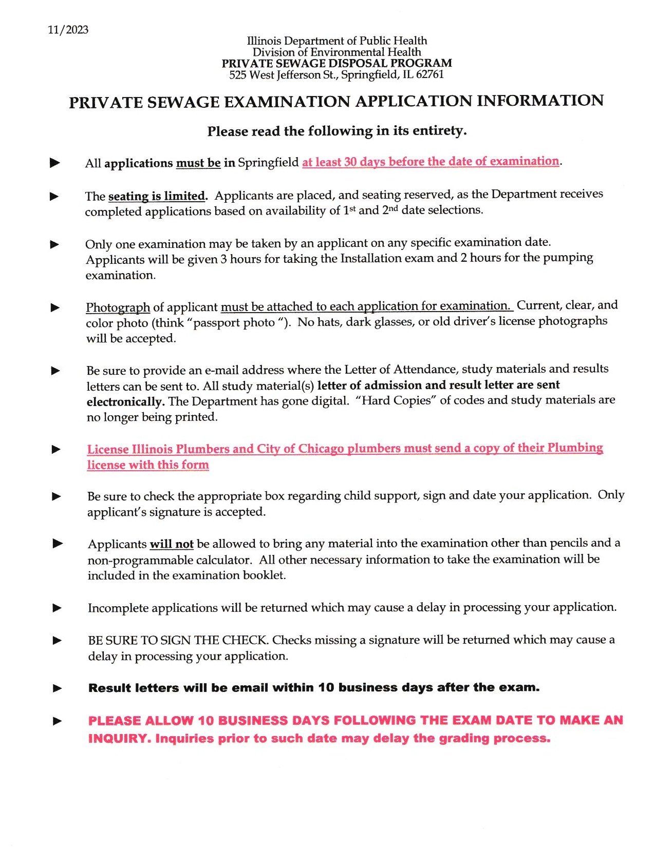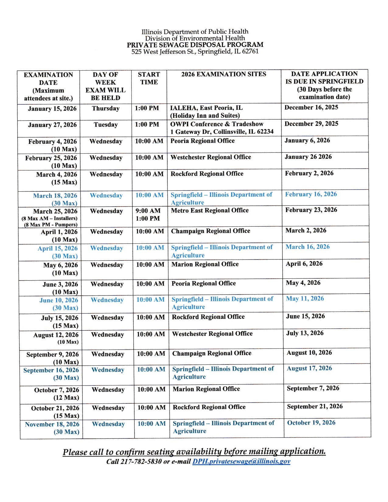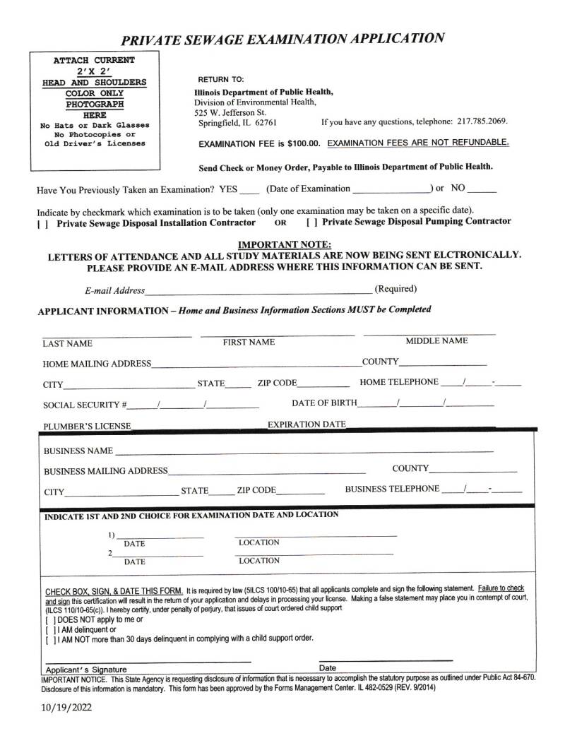 IDPH Installer & Pumper Exam Application & Test Dates & Locations